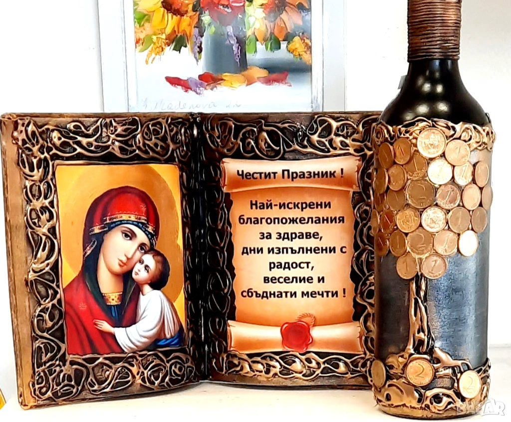 Оригинална, ръчно изработена икона - книга подходяща за всеки дом, вила и всички семейни поводи, и празници, с която ще зарадвате и впечатлите домакините.