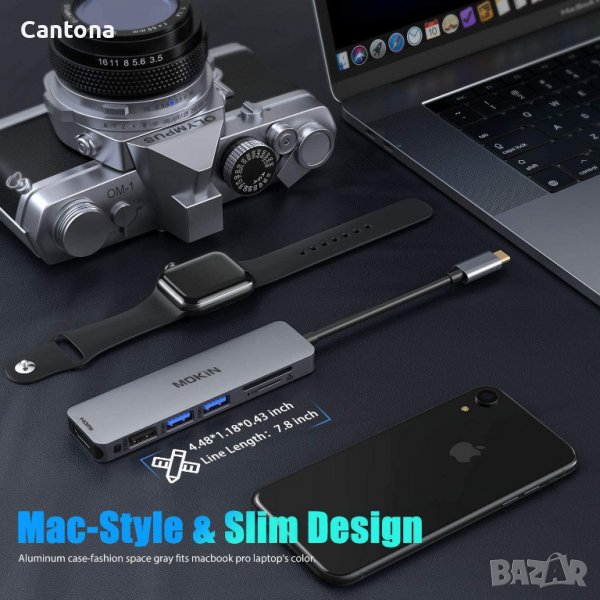 - Проектиран с класически алуминиев корпус, елегантен компактен и джобен размер; Идеален за пътуване и настройка за домашна работа; Plug and Play; няма заявки за други драйвери, MOKiN USB C Multiport Adapter Mac Dongle работи с нови USB C лаптопи/таблети/телефони: MacBook Pro 2020-2016/MacBook Air 2020-2018, Surface go, Surface Pro 7, Dell XPS 13 15, Lenovo yoga 720 920 910 и последващите им модели