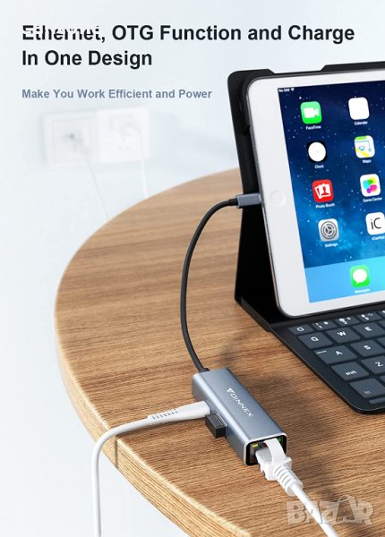 FOINNEX Lightning към Ethernet 10/100 Mbps адаптер, USB порт и PD порт за зареждане, Plug and Play