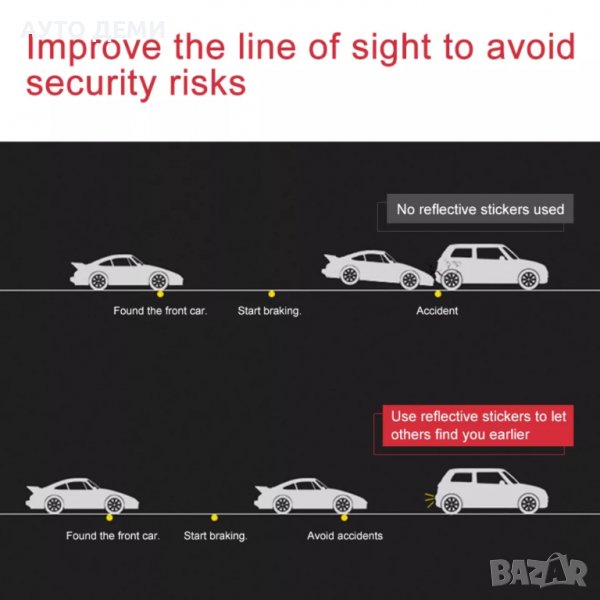 Продавам качествени самозалепващи светлоотразителни стикери предназначени за залепване от вътрешната страна на автомобил ,така че при отваряне на вратата на колата идващата в гръб кола да види и да се избегне ПТП.