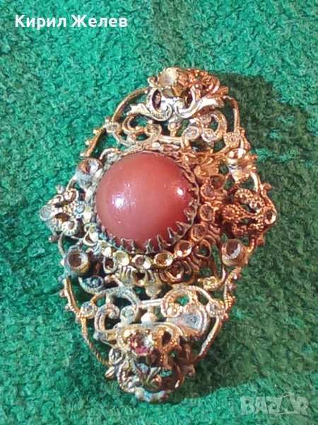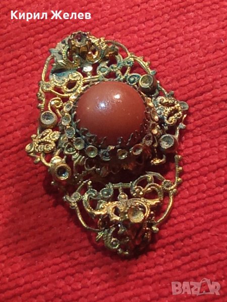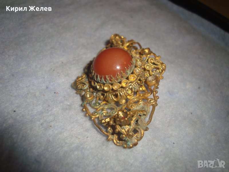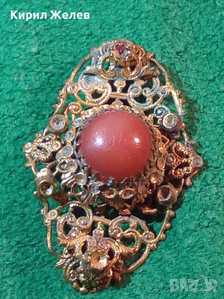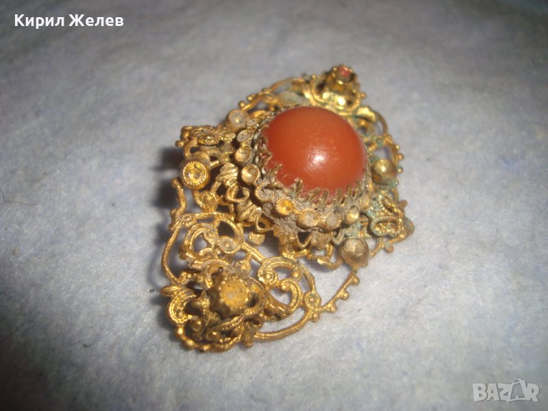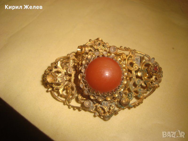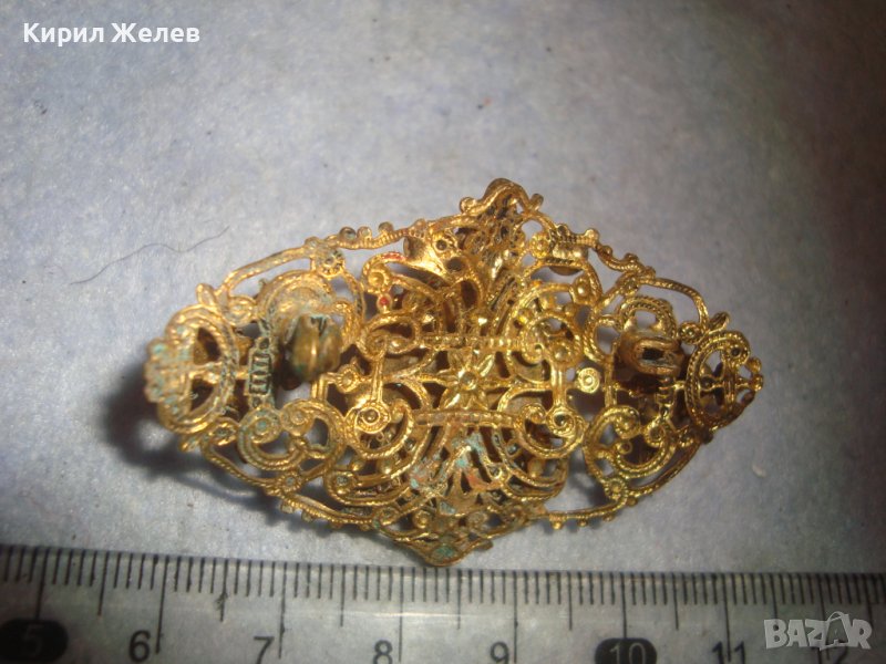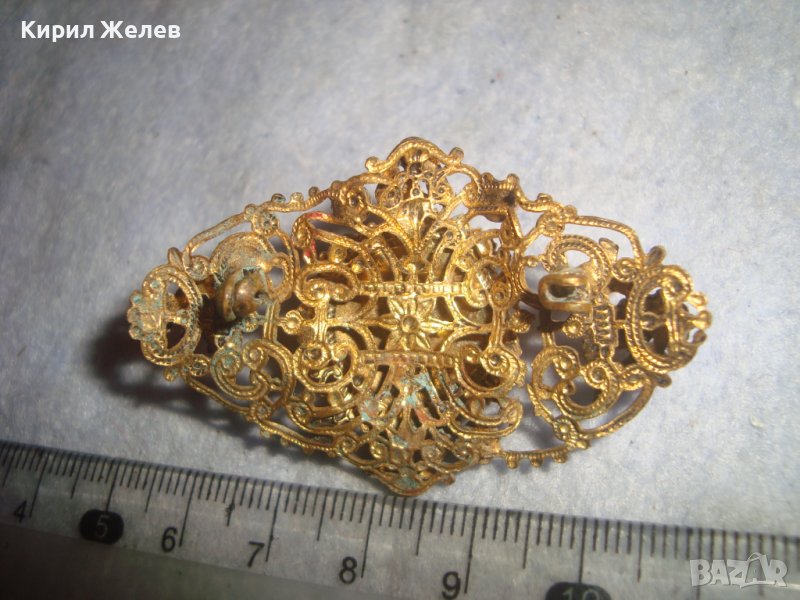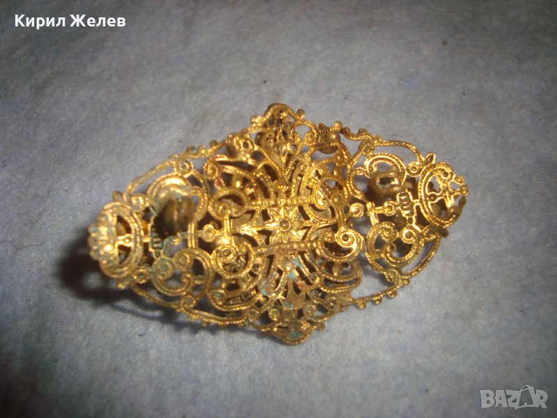 ПРЕКРАСНА СТАРИННА ФИЛИГРАННА БРОНЗОВА ПОЗЛАТЕНА АР НУВО РЕТРО БРОШКА МАЙСТОРСКА ИЗРАБОТКА 31393