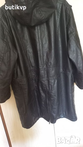 Много добре запазено Черно манто от естествена кожа с капитониран хастар.Има 2 вътрешни джоба с к капаци.Закопчава се с цип и копчета ,а качулката може да се откопчава/с копчета тик-так/.Размер 50-купувано от Испания.Дължина по гърба 91см,ръкав +рамо 71 см общо,обиколка гърди 120 см.Няма скъсано или протрито.
