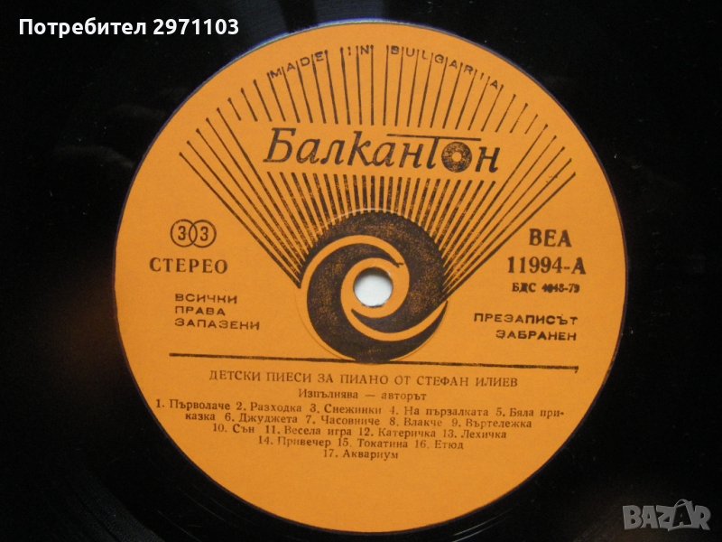 Грамофонна плоча - ВЕА 11994 - Детски пиеси за пиано от Стефан Илиев, изпълнява авторът.