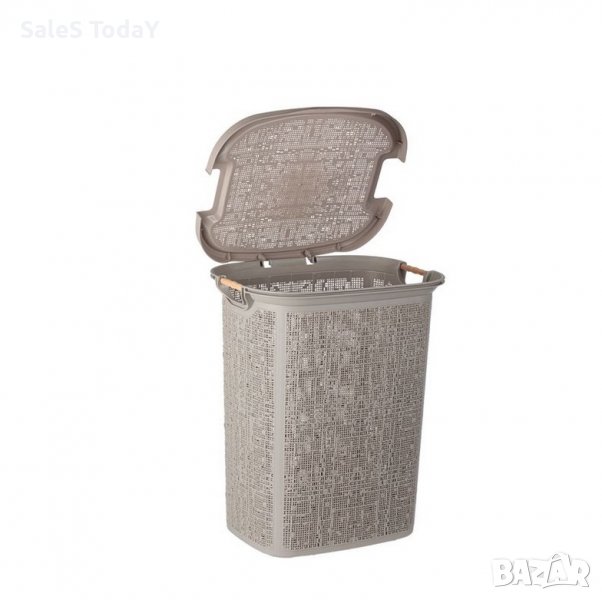 Кошница за баня с перфориран дизайн и дървени дръжки. Капачката може да се отделя. Идеален за организиране и аранжиране на банята.
