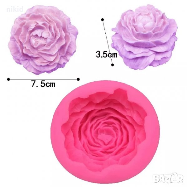 Голям цъфнал Божур цвете силиконов молд форма декорация торта фондан шоколад гипс → Обява 38047550