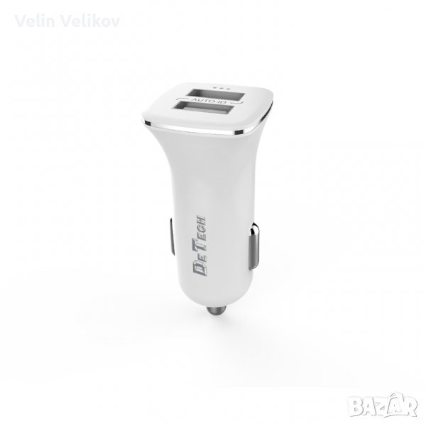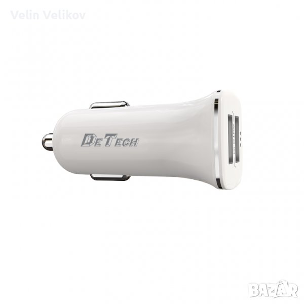 Зарядно устройство за кола DeTech, DE-C01, 5V/2.4A, 12/24V, 2 x USB, Бял → Обява 38047753