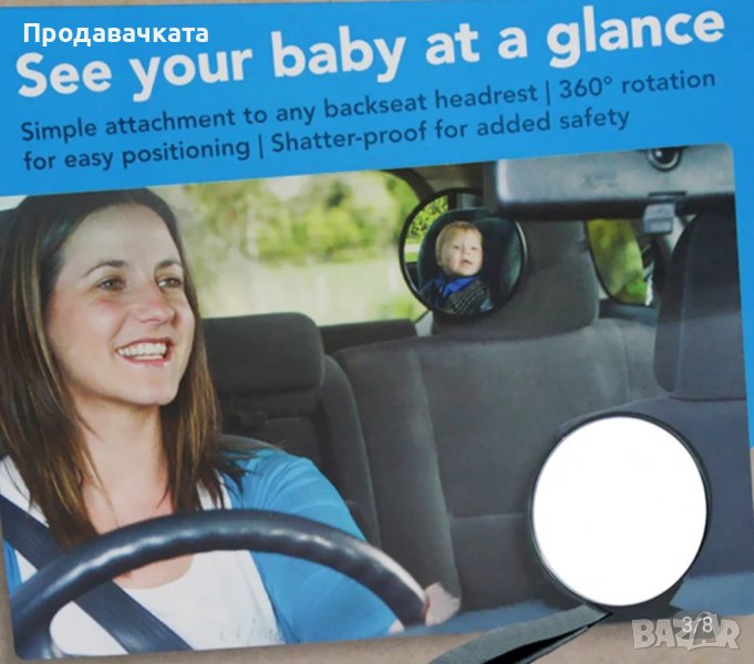 Огледало за задна седалка с видимост към детето → Обява 38050572