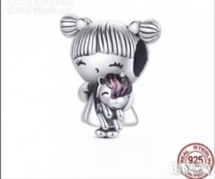 Сребърен елемент Пандора,колекция "Family",baby girl with uniqorn/нов → Обява 38050837