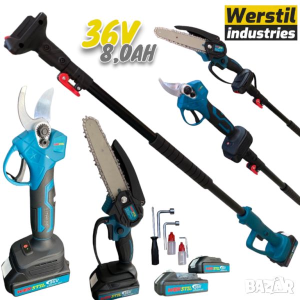 Телескопичен Прът Безжична Ножица и Резачка За Клони 3в1 36V 8,0AH