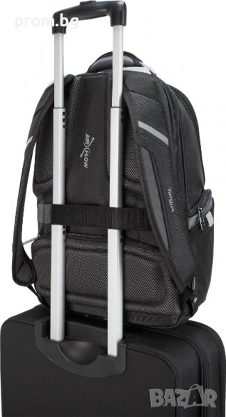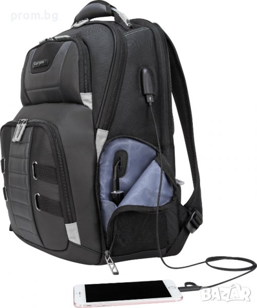 висококачествена раница за лаптоп с вграден USB порт, DrifterTrek, внос от Германия. Многофункционална, с отделение за лаптоп с различни размери от 15,6 - 17,3". Предно голямо отделение с три мрежести джоба с цип. Два предни лицеви джоба с цип, горният е с отделение за кабел. С външен USB порт за захранване в движение (батерия и кабел за зареждане не са включени). Два странични джоба с цип и две мрежести отделения. С джоб на гърба, с отвор за кабел. Раницата е изработена от здрав полиестер, влаго и водоустойчива. С ергономичен дизайн, широки и удобни презрамки. Задната част на раницата е с AIR Flow степен, предпазваща от изпотяване. Снабдена с отвори за прикрепяне към пътнически куфар. Подсилените дръжки за носене осигуряват издръжлив и удобен захват. Черен цвят, тегло 1,3 кг, 43 л.