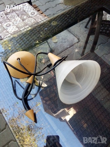 Продава декортивна лампа, Икеа, с дълъг шнур,с дървени орнаменти, → Обява 38070404