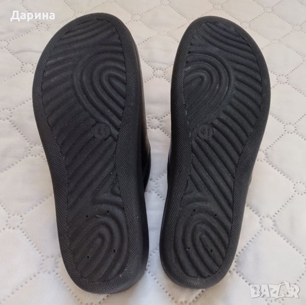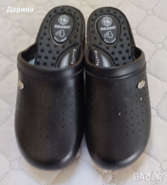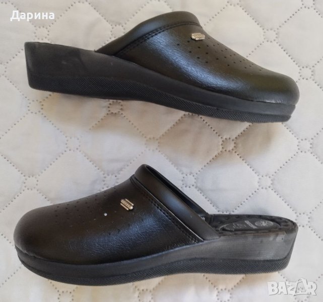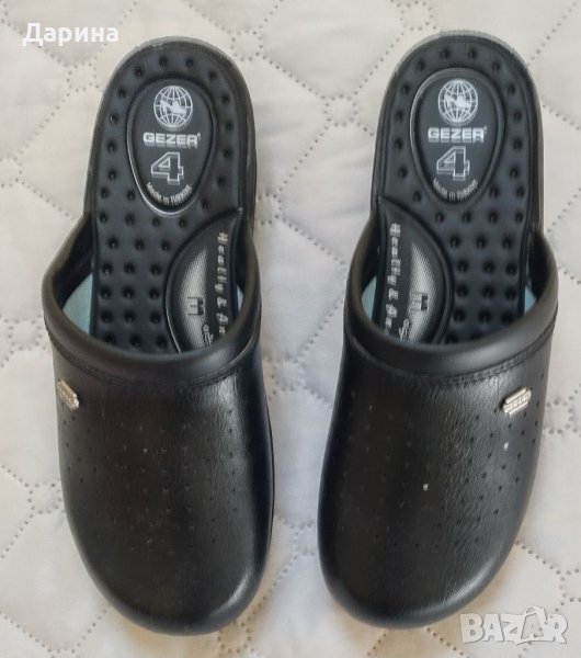Дамски чехли на турската марка GEZER , изработени от мека еко кожа , която е перфорирана в горната си част за добра вентилация и с ортопедична стелка , която позволява целодневно ползване без умора и миризми . Чехлите са удобни и меки , а подметката е дебела и леко еластична на пръстите . Стелка : 26 см . Нови . Изпращам с Еконт за сметка на купувача .