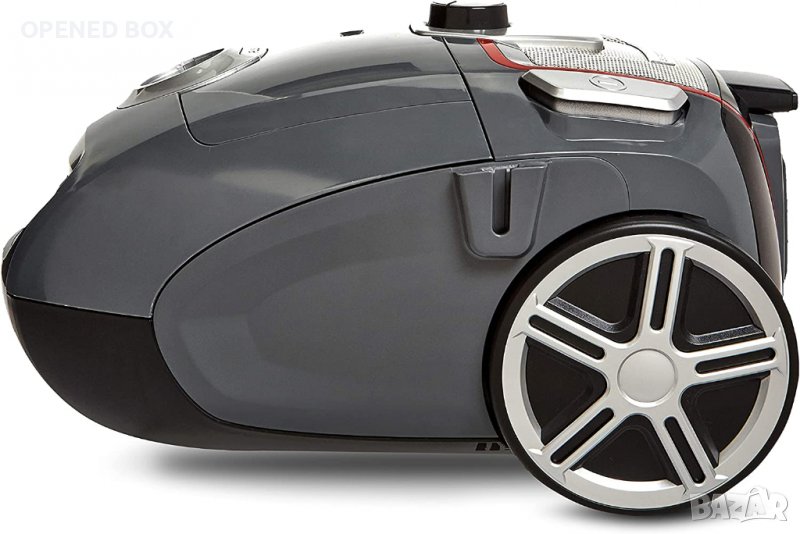 Високоефективна прахосмукачка с клас на енергийна ефективност A. Включва накрайник за прах и накрайник за цепнатини, които са удобно прикрепени към тялото на прахосмукачката