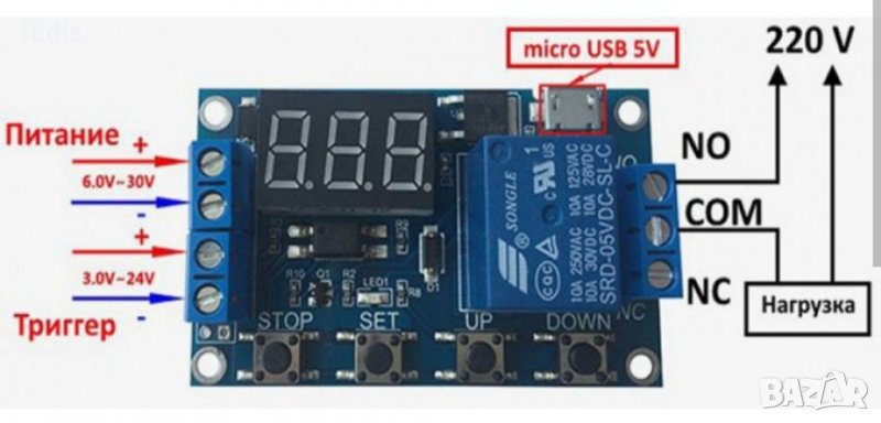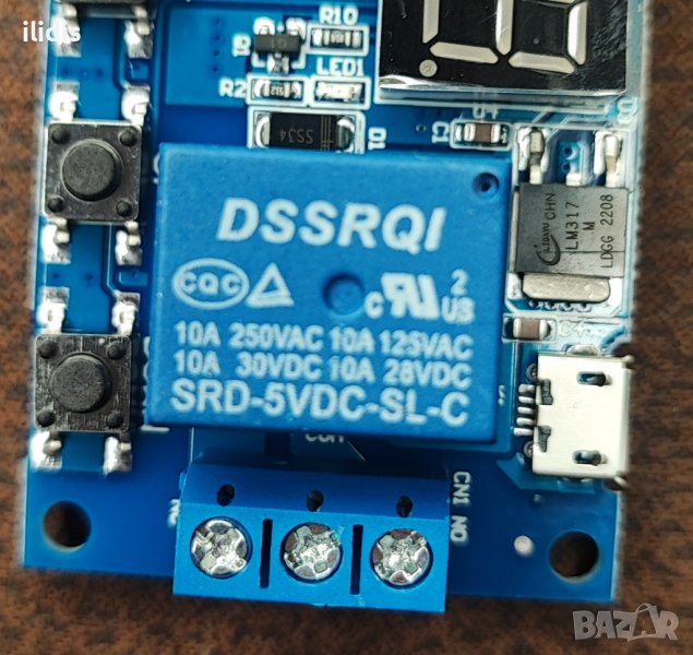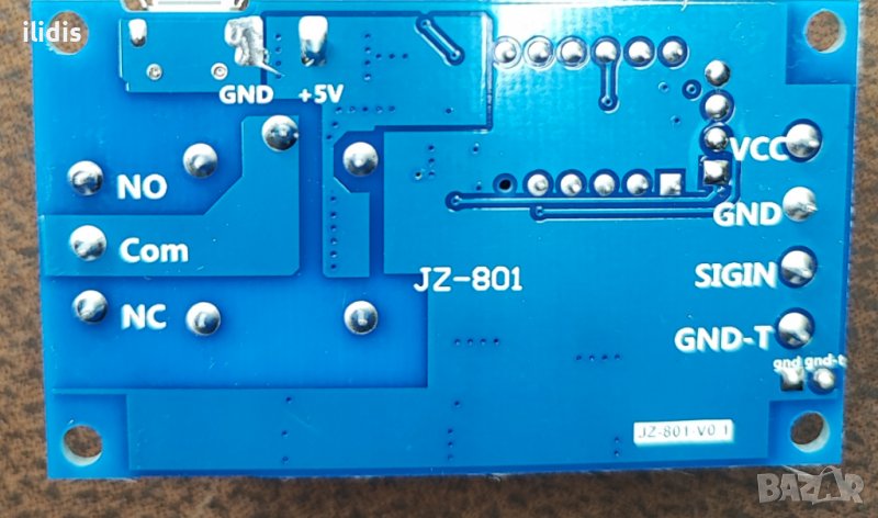 Вариант с нормално отворен( NO, нормално затворен( NC) и общ(COM) контакти на релето на изхода, галванично разделени от схемата на таймера