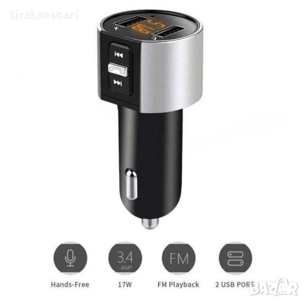 Bluetooth FM Трансмитер за кола, Bluetooth музика трансмитер, снимка 1 - Аксесоари и консумативи - 38079317 Bluetooth FM Трансмитер за кола, Bluetooth музика трансмитер, снимка 2 - Аксесоари и консумативи - 38079317 1/2