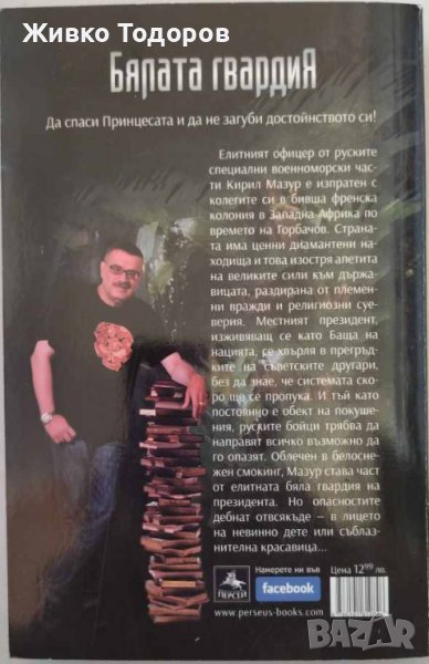 В ерата на Горбачов елитният офицер от руските специални военноморски части Кирил Мазур е изпратен с колегите си в бивша френска колония в Западна Африка. Страната има ценни диамантени находища и това изостря апетита на великите сили към държавицата, раздирана от племенни вражди и религиозни суеверия. Местният президент, изживяващ се като Баща на нацията, се хвърля в прегръдките на съветските другари, без да знае, че системата скоро ще се пропука. И тъй като постоянно е обект на покушения, руските бойци трябва да направят всичко възможно да го опазят. Облечен в белоснежен смокинг, Мазур става част от елитната бяла гвардия на президента. Но опасностите дебнат отвсякъде - в лицето на невинно дете или съблазнителна красавица... По повод 20-годишнината от първата поява в литературата на любимия герой Кирил Мазур и 10-годишнината от превода на първия роман с него ("Лов на пираня") на български, Александър Бушков и Издателска къща "Персей" предлагат тройна среща с героя - трилогията "Бялата гвардия". Това са три романа, споени не само от присъствието на Мазур, но и от други нишки, майсторски изтъкани от популярния руски писател.