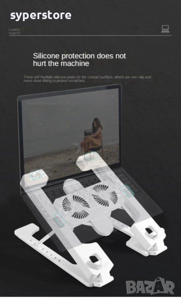 Поставка за лаптоп Стойка за лаптоп Digital One SP00507 H688с вентилатори бяла сгъваема с калъф → Обява 38082103