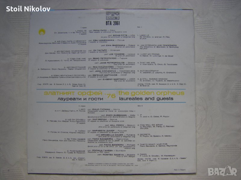 Грамофонна плоча - ВТА 2061 - Златният Орфей '76: лауреати и гости