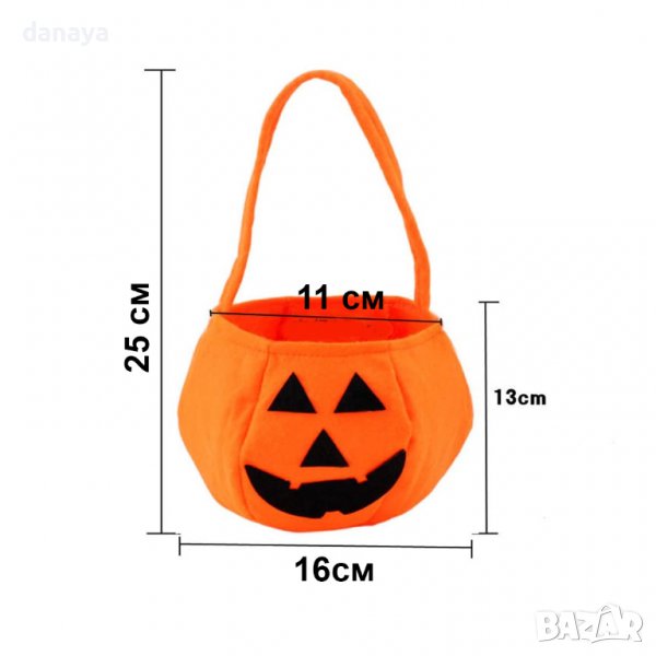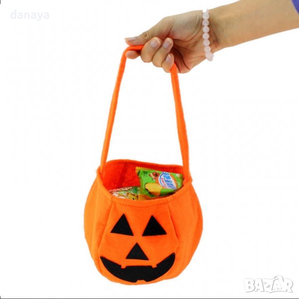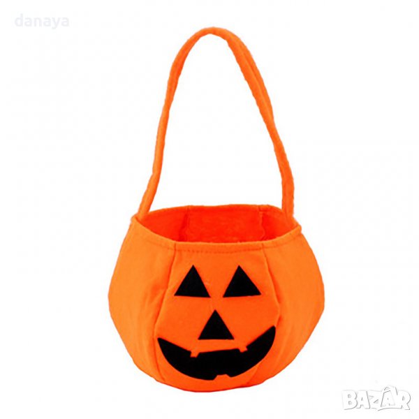 Текстилна кофичка за събиране на лакомства за Halloween. Хелоуин кофа тиква, изработена от филцов плат. Хелоуин кошничка за бонбони и лакомства с форма на страшна тиква, с дръжка за носене. Задължителен аксесоар към костюма за Хелоуин!