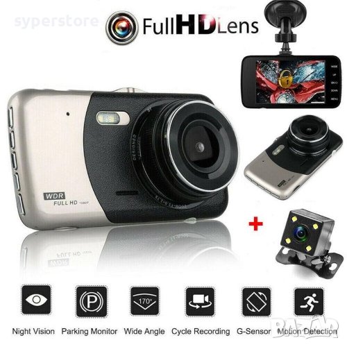 Видеорегистратор за кола Видеорекордер 2 камери Digital One SP00512 FullHD звук, 4" дисплей допълнителна камера CarDVR