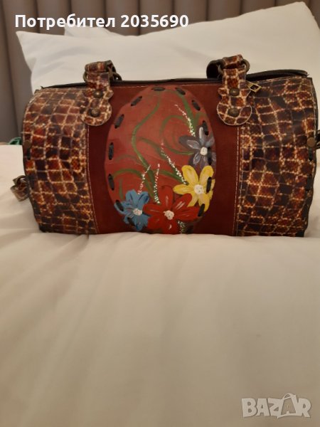 Дизайнерска чанта от естествена кожа. Ръчно рисувана. Чантата е бутикова, неповторима.