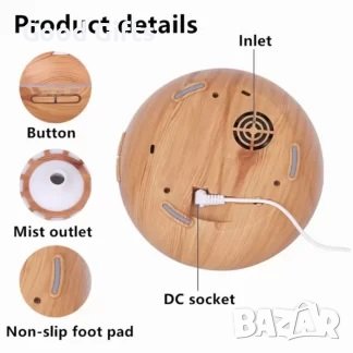 Арома дифузерът е перфектен за използване у дома, на работното място или в друго затворено помещение, като той овлажнява, пречиства и йонизира въздуха ефективно.