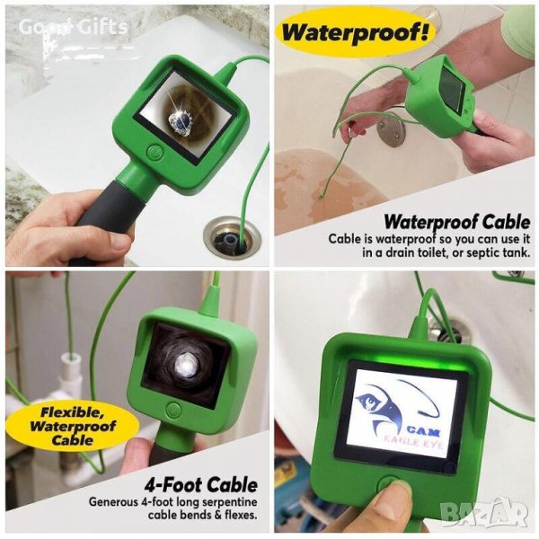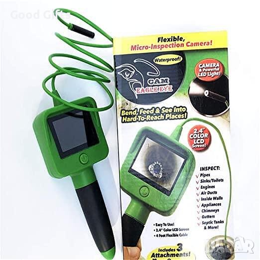 Практичен ендоскоп, с който ще можете да видите кое къде се намира. Той е удобен за намиране на предмети, които са паднали в тесни пространства, като канали и други. Удобен е за работа в автосервизи, където се изисква да има наблюдение на отделните части на автомобили и други. Ендоскопът има широко приложение в най-различни професии. Уредът работи с 4 батерии тип АА (не са включени) за домашна и полева употреба. Той е снабден с кука, кука с огледало и кука с магнит за решаване на повече проблеми. С 2.4-инчов Цветен дисплей с LED светлина на камерата за ясна видимост. Уредът е снабден с 1,2 метра гъвкаво жило, лесно се достига до малки места, където ръката не може да стигне.