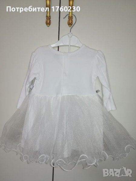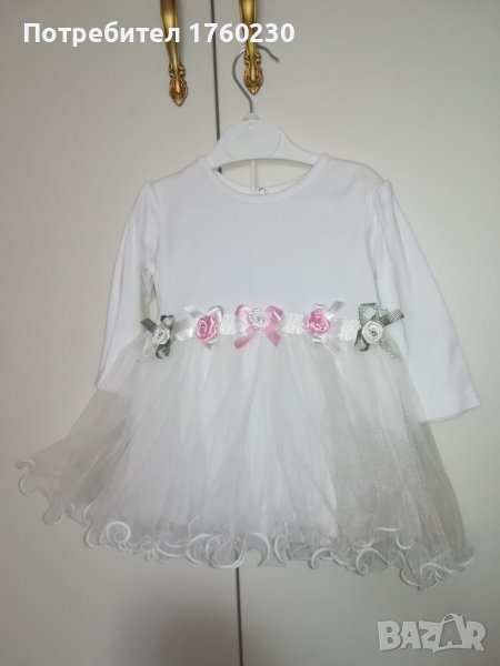 Продавам рокля за бебе от памук и тюл на полата. Обличана веднъж за фотосесия. Размер 86. Цена 10лв.