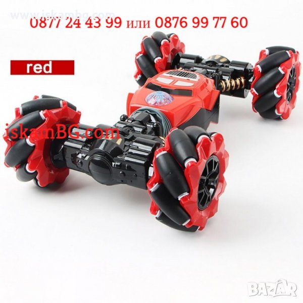 Кола с дистанционно управление, която върви във всяка посока! Включва две дистанционни: традиционен джойстик и истински хит! - дистанционно управление под формата на гривна за ръка - СЕНЗОР ЗА ГРАВИТАЦИЯ . Благодарение на него управлявате автомобила с жестове. И двете дистанционни работят на честота от 2,4 GHz.