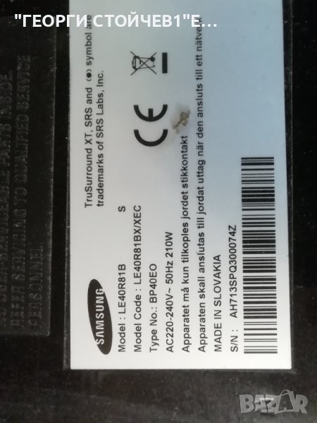 LE40R81B BN41-00839E SIP400B BN44-00167 LTA400WT-L09  4046HDCP2LV0.6  SSB400WA16V REV 0.1, снимка 1 - Части и Платки - 38096812  LE40R81B BN41-00839E SIP400B BN44-00167 LTA400WT-L09  4046HDCP2LV0.6  SSB400WA16V REV 0.1, снимка 2 - Части и Платки - 38096812  LE40R81B BN41-00839E SIP400B BN44-00167 LTA400WT-L09  4046HDCP2LV0.6  SSB400WA16V REV 0.1, снимка 3 - Части и Платки - 38096812  LE40R81B BN41-00839E SIP400B BN44-00167 LTA400WT-L09  4046HDCP2LV0.6  SSB400WA16V REV 0.1, снимка 4 - Части и Платки - 38096812  LE40R81B BN41-00839E SIP400B BN44-00167 LTA400WT-L09  4046HDCP2LV0.6  SSB400WA16V REV 0.1, снимка 5 - Части и Платки - 38096812  LE40R81B BN41-00839E SIP400B BN44-00167 LTA400WT-L09  4046HDCP2LV0.6  SSB400WA16V REV 0.1, снимка 6 - Части и Платки - 38096812  LE40R81B BN41-00839E SIP400B BN44-00167 LTA400WT-L09  4046HDCP2LV0.6  SSB400WA16V REV 0.1, снимка 7 - Части и Платки - 38096812  LE40R81B BN41-00839E SIP400B BN44-00167 LTA400WT-L09  4046HDCP2LV0.6  SSB400WA16V REV 0.1, снимка 8 - Части и Платки - 38096812  LE40R81B BN41-00839E SIP400B BN44-00167 LTA400WT-L09  4046HDCP2LV0.6  SSB400WA16V REV 0.1, снимка 9 - Части и Платки - 38096812  LE40R81B BN41-00839E SIP400B BN44-00167 LTA400WT-L09  4046HDCP2LV0.6  SSB400WA16V REV 0.1, снимка 10 - Части и Платки - 38096812  LE40R81B BN41-00839E SIP400B BN44-00167 LTA400WT-L09  4046HDCP2LV0.6  SSB400WA16V REV 0.1, снимка 11 - Части и Платки - 38096812  LE40R81B BN41-00839E SIP400B BN44-00167 LTA400WT-L09  4046HDCP2LV0.6  SSB400WA16V REV 0.1, снимка 12 - Части и Платки - 38096812  LE40R81B BN41-00839E SIP400B BN44-00167 LTA400WT-L09  4046HDCP2LV0.6  SSB400WA16V REV 0.1, снимка 13 - Части и Платки - 38096812 1/13