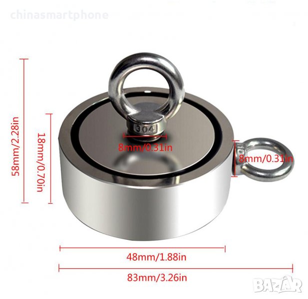 Магнит за риболов 48mm ДВУСТРАНЕН 2x80кг 322гр компактен | moqtmagazin.com