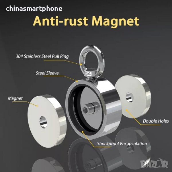 📏 Диаметър: 94 mm (двустранен магнит с халка)