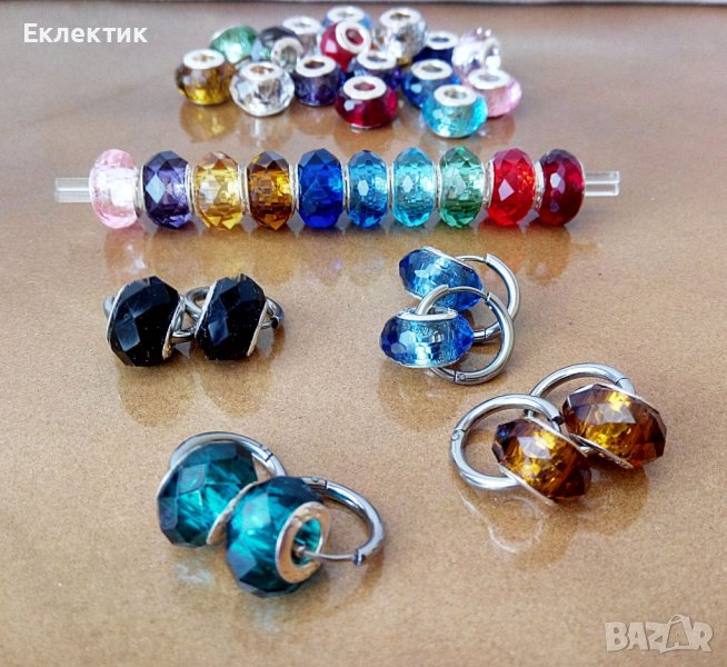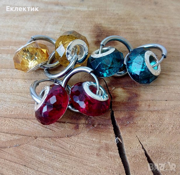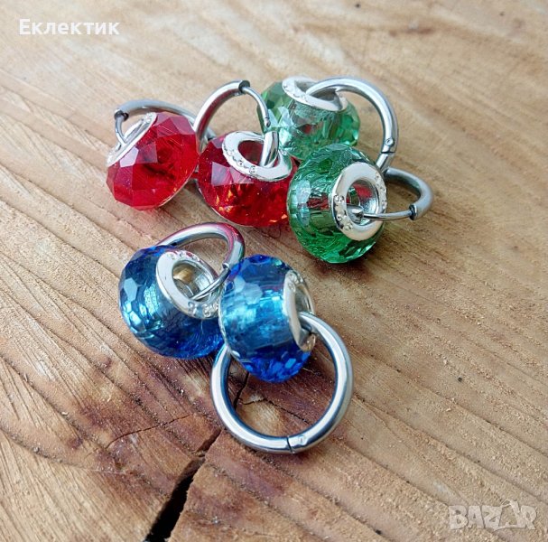 Обеци от неръждаема стомана и кристални мъниста