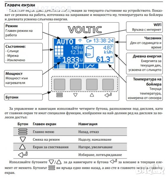 VOLTIC ФОТОВОЛТАИЧЕН КОНТРОЛЕР ЗА ДИРЕКТНО ЗАГРЯВАНЕ НА БОЙЛЕР със Соларни панели