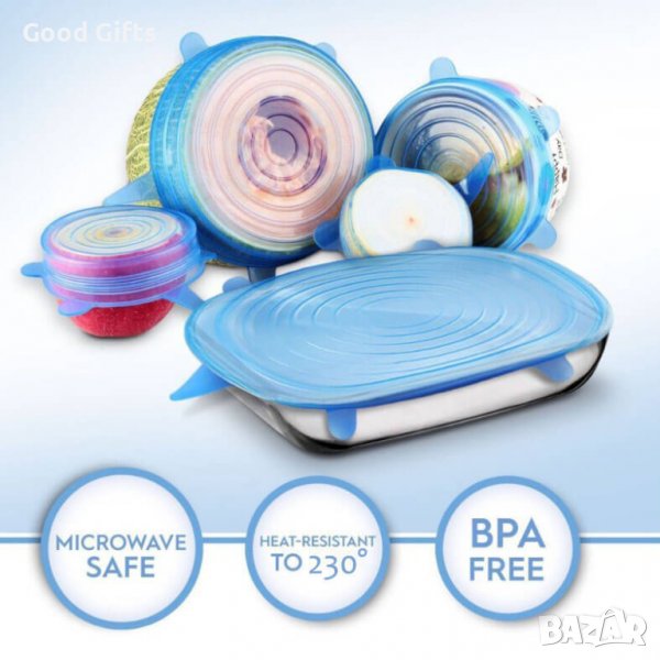 Накарайте храната си да остане свежа и сочна за по-дълъг период от време с помощта на разтегаемите силиконови капаци! Капаците просто ще Ви впечатлят с тяхната уникална еластичност и устойчивост.