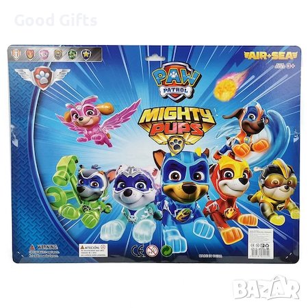 Комплекта включва 8 броя фигурки с герои на пес патрул и 6 значки