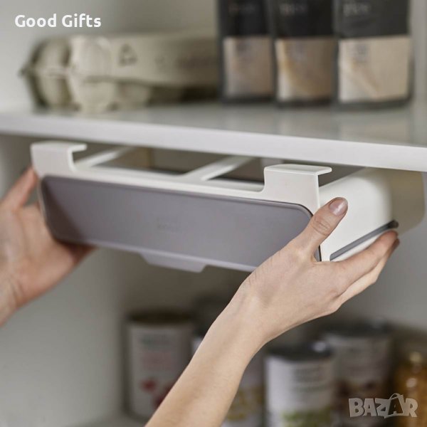Дизайна на органайзера позволява използването на пространството под вашите рафтове, което обикновено остава неизползвано, с удобно изтеглящо се отделение.