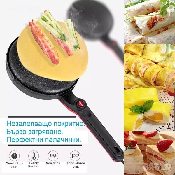 Всеки обича тънки и вкусни палачинки за неделна закуска – с този електрически уред за палачинки ги приготвяш за нула време достатъчно количество за цялото семейство. Без залепване и лоша форма. Перфектно кръгли тънки палачинки!