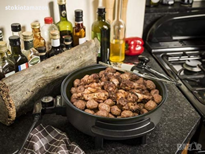 Независимо дали си професионалист или просто любител, ще останеш впечатлен от изпълнението и стилния дизайн на електрическия тиган на Bestron. Той ще сподели всички свои тайни за това как се приготвя пица, барбекю, супа, ризото,