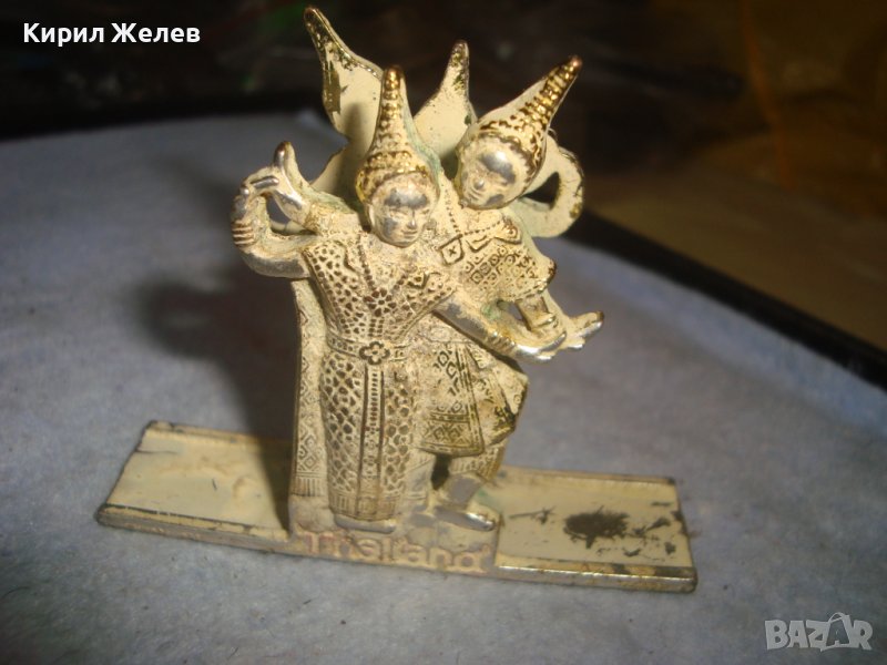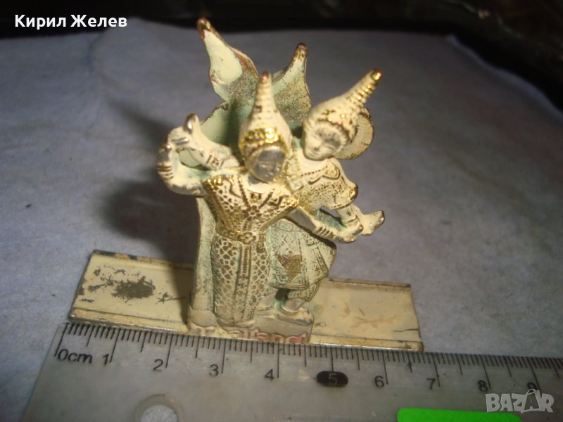 СТАРА ТРАДИЦИОННА ФОЛКЛОРНА ОЛОВНА СТАТУЕТКА - ПОСТАВКА Тайланд с ПОЗЛАТА и ЕМАЙЛ-ПАСТА 30949 → Обява 38108246