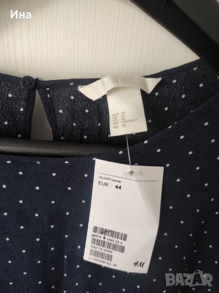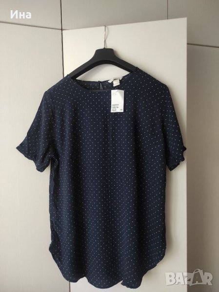 НМ нова тъмно синя блуза на точки р-р 44 → Обява 38108983