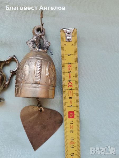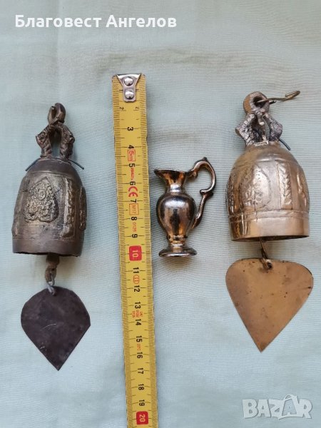 Две бронзови камбанки с размери, височина 8 см, диаметър 3,5 и 4 см. Каничката е висока 5 см. Може и поотделно.