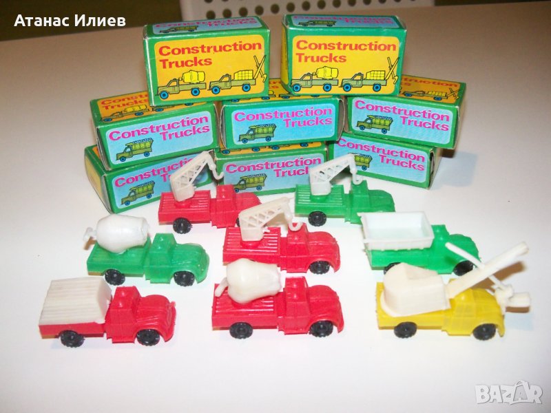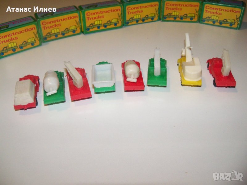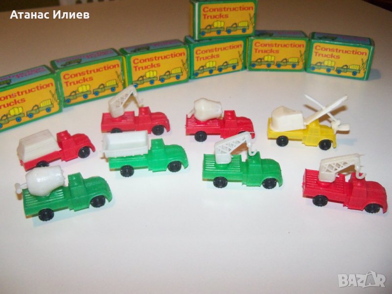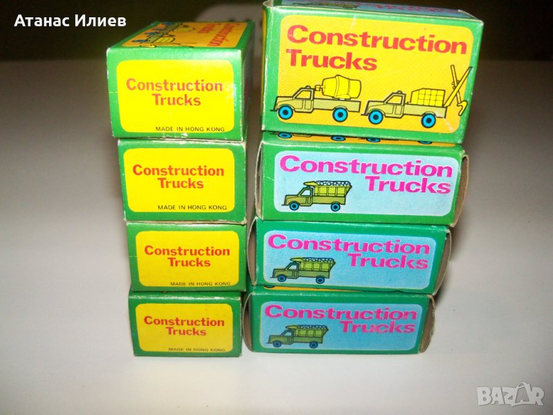 Осем камиончета играчки произведени в Хонг Конг през 1960г. Камиончетата са в отлично състояние и са в оригиналните си опаковки, които също са в отлично състояние. Дължината на камиончето е 5 см.
