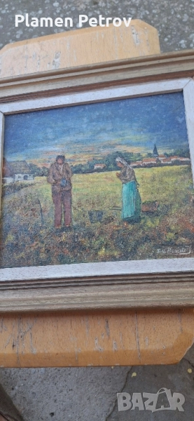 картина маслени бои върху дъска от холандски художник и 2броя картини, маслени бои от Ради Неделчев с подпис са и трите картини 28/29см е поголямата само картината и 20/17см по малката цената е за 1брой
