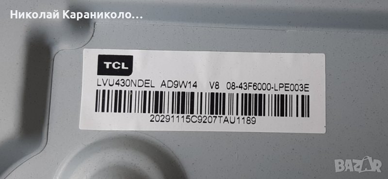 TCL 43EP640 за части по причина-счупена матрица/LVU430NDEL AD9W14 V8/.Редовни съответно: