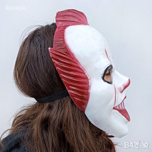 Голяма и страшна Хелоуин маска Клоун. Halloween маска, идеална за Хелоуин партита, театрални и сценични костюми, училищни партита. Маската се закрепя към лицето с ластик. Изработена от пластмаса.