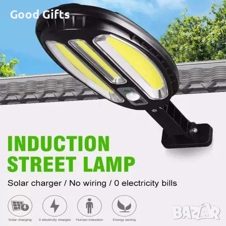 Соларната лампа има сензор на движение, който се активира когато засече обект.