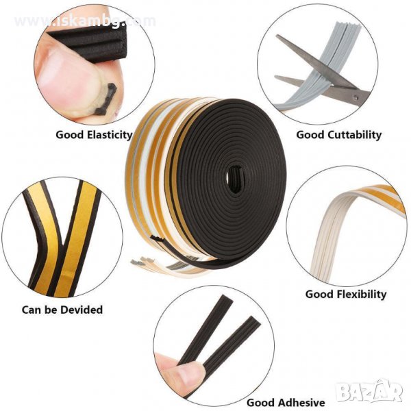 Самозалепващо се уплътнение за врати и прозорци тип I. Осигурява ефективна защита срещу студ, вятър, топлина, шум, влага и проникване на насекоми. Уплътнението допринася да пестите до 35 % енергия.