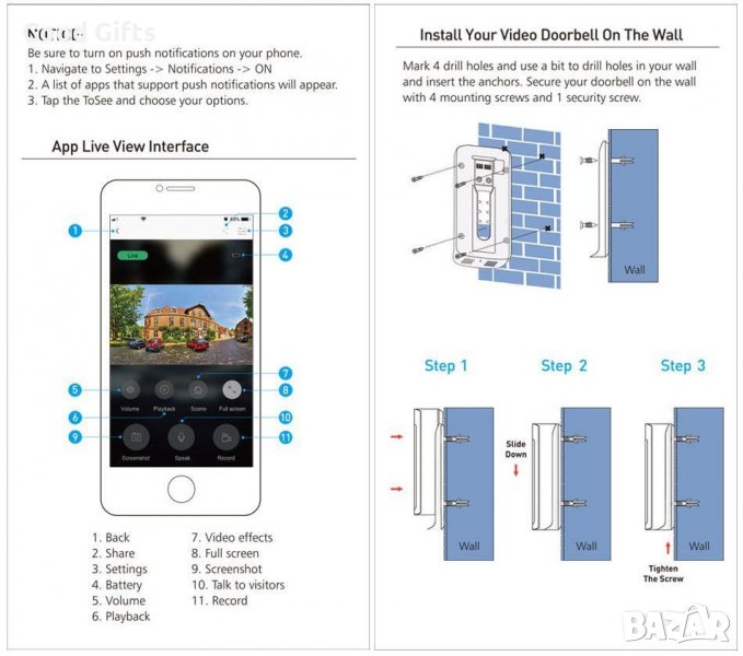 Модел: WiFi видео звънец с камера и интерком връзка със смартфон