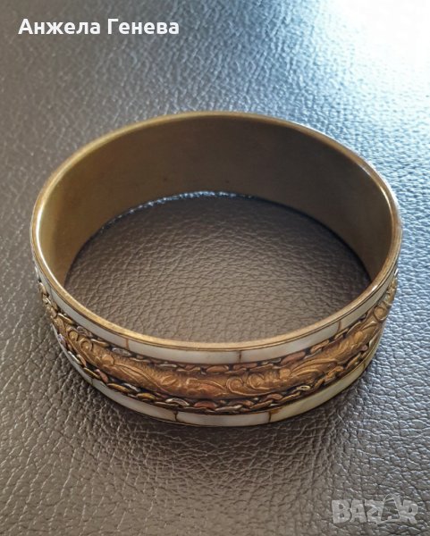 Винтидж гривна от месинг мед и седеф, снимка 1 - Гривни - 38122186 Винтидж гривна от месинг мед и седеф, снимка 2 - Гривни - 38122186 1/2
